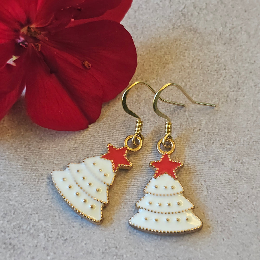 Enamel Christmas Earrings - Gold Plated