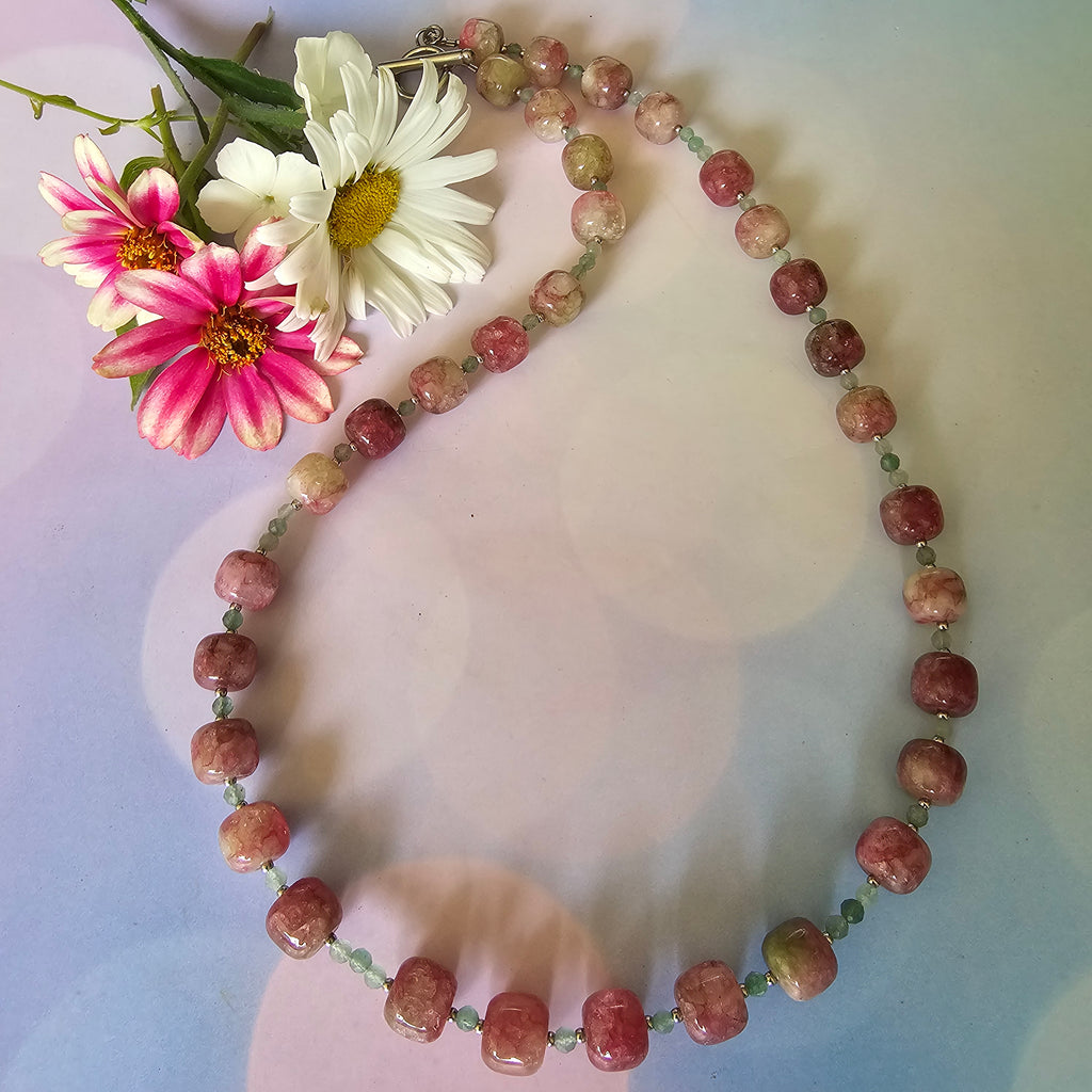 Green and Pink Gemstone Necklace