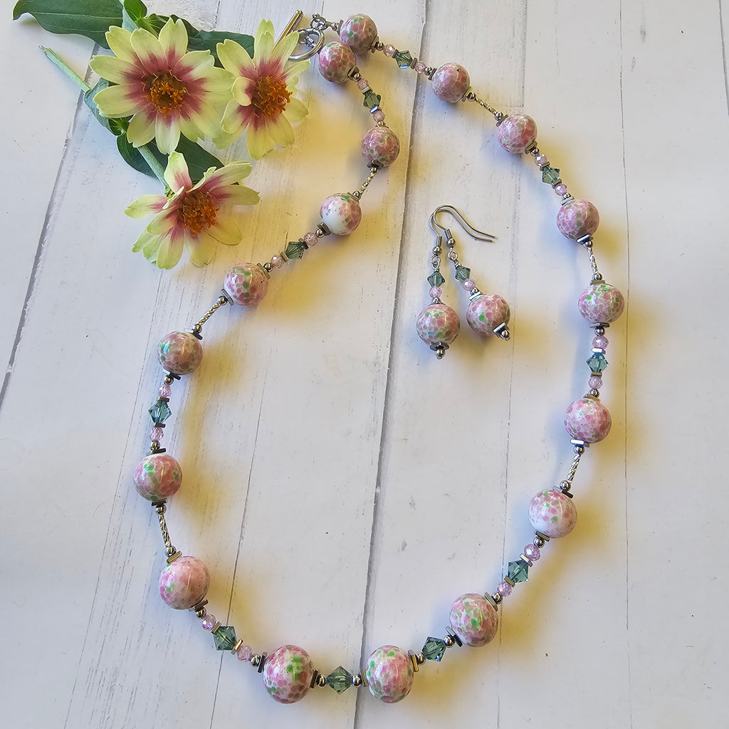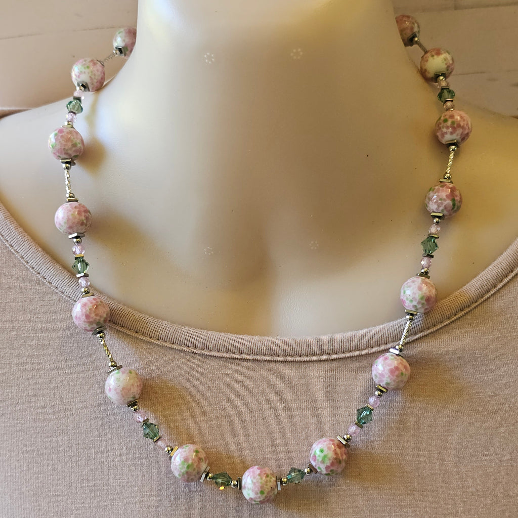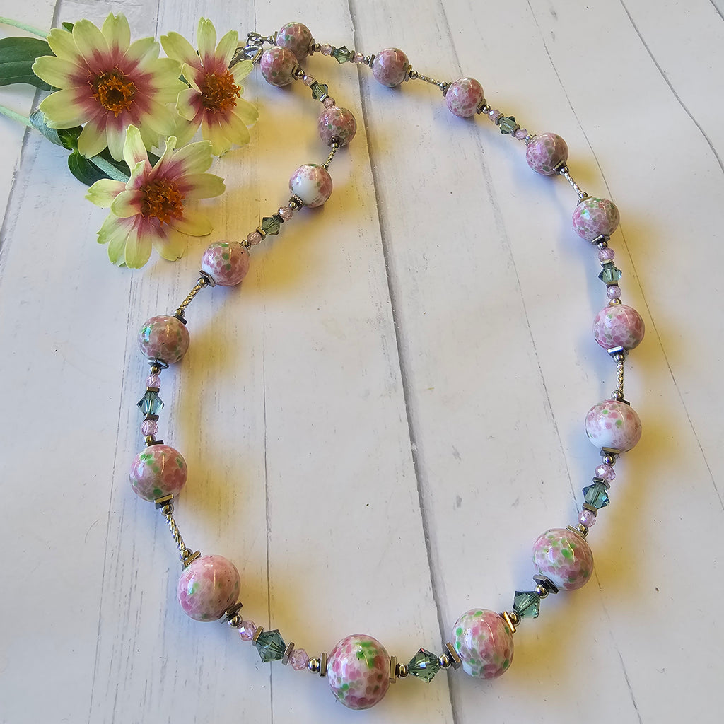 Pink and Green Speckled Glass Necklace